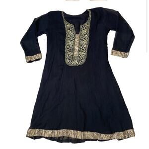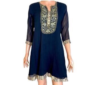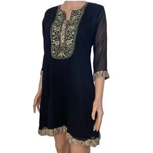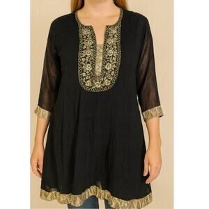 India Gold Embellished Long Modest Tunic - Black SZ L sheer sleeve sheath dress