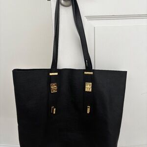 India Hicks black pebble leather tote. Gently used with some markings on the interior as pictured. No markings/scratches on the exterior leather. Happy to send additional photos upon request.
