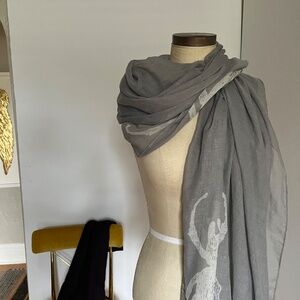 A feather-light fabric scarf, to be worn in so many different ways: as an evening shawl or a quick accessory to liven up another day of jeans, or simply as a sarong at the beach. Size: 74" h x 39 ½" w So chic, gently worn 100% polyester