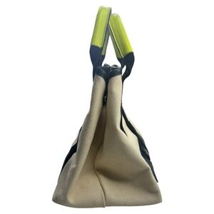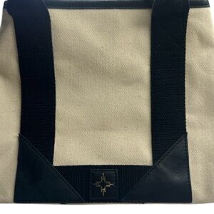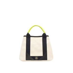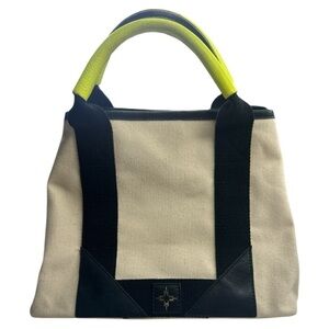 Boho Chic, Everyday Casual, Resort & Vacation, India Hicks Mini Biscayne Bay tote, India Hicks canvas tote bag, India Hicks handbag cream black, India Hicks Baby Biscayne Bay bag, India Hicks designer tote purse, India Hicks small canvas bag, luxury canvas tote with leather trim, India Hicks fluorescent yellow handle bag, India Hicks travel tote mini, India Hicks collectible tote