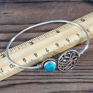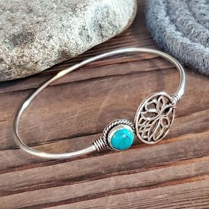 Handcrafted Turquoise Gemstone Lotus Sterling Silver Overlay Cuff Bracelet