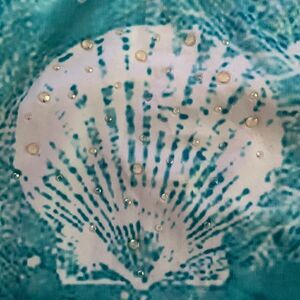 Beautiful aqua blue color with white shells adorned with rhinestones
