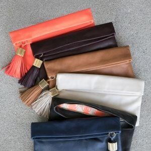 Stunning fold over clutch in butterly leather. Gold Zipper closure w/Circle ring.