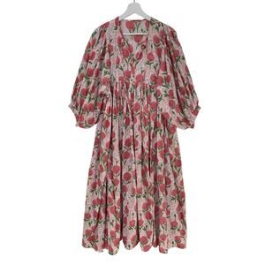 Indian Block Print Dress Floral Cotton Kyra Boho Midi Womens Small