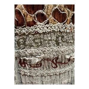 This Indian Bohemian Embroidery Gray Leopard Maxi Dress in size Medium exudes a hippie, happy, and harmonious vibe. The sleeveless dress features a V-neckline and a pullover closure, making it suitable for various occasions from casual to formal. The animal print pattern in shades of gray and leopard add a touch of wildness to the dress, which is made from rayon and viscose fabric. With beaded, corded, and embroidered details, this long dress with an empire waist and high waist features a blend of Art, Beach, and Bohemian themes, fitting for all seasons. The dress is in preowned condition with visible pulls and flawed unraveling on the front of the dress. This is normal for the delicate fabric this dress is made of. Please study the provided photos carefully. The dress is from a smoke free and dog friendly environment. If you purchase two items from my listings you will enjoy 25% off. Offers always entertained..