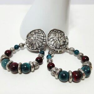 Add a touch of Native American flair to your ensemble with these stunning Indian Chief Clip On Earrings. Featuring a multicolored palette, the earrings boast a round simulated stone, which catches the light beautifully. The dangle/drop style coupled with the 3-inch length offers a dramatic and eye-catching silhouette that's perfect for any occasion. Crafted in the United States, these earrings are designed with comfort in mind, featuring a clip-on closure that's easy to wear. They are an ideal choice for those who appreciate ethnic and regional style, and the lobe area can accommodate the 3-inch drop effortlessly. Delight in the blend of traditional design that makes these earrings a unique accessory for any jewelry collection.