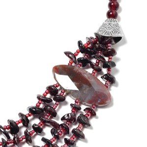 Indian Garnet, Red Bead Multi Strand Necklace (26-28 in) in Silvertone