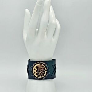 Indian Head Leather Cuff Bracelet Carved Tribal Biker Native American Western