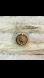 Copper colored coin at center, trimmed in turquoise & feathers down the sides.