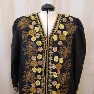 Indian Inspired Black Rayon 2-PC Set Foral Embroidered Jacket & Skirt SZ 20