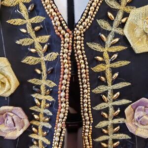 Step into effortless elegance with this striking two-piece black set by SEMI QUEEN, made in India from soft, breathable 100% rayon. The semi-lightweight floral embroidered jacket/top features a relaxed silhouette, one hook top closure, and pockets, while the coordinating maxi skirt steals the spotlight with intricate gold floral embroidery along the hem. The elastic waistband ensures all-day comfort, and the flowy design moves beautifully with every step. Together, they make the perfect set for boho-chic outings or dressed-up evenings.