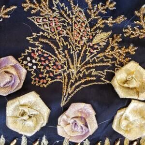 Indian Inspired Black Rayon 2-PC Set Foral Embroidered Jacket & Skirt SZ 20