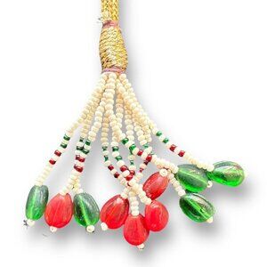 Indian Jewelry Lariat Tassel Necklace with Faux Mini Pearls accented with Leaf D