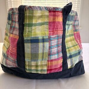 Indian Madras Plaid Cotton Patchwork Tote Bag 15"x6"x8"