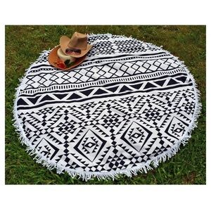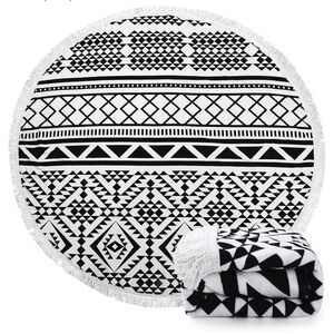 Indian Mandala Microfiber Round Beach Blanket Tassels Soft Water Absorbent Towel 59 inches across