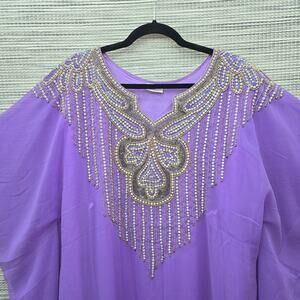 Indian Maxi Kaftan Dress Rhinestone Beaded Purple Chiffon Kimono Bohemian Boho