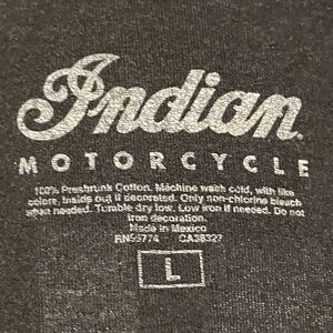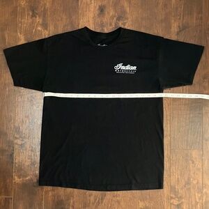 Indian Motorcycle Dealer Men’s Black T-Shirt, Red and White Lettering, Size L.