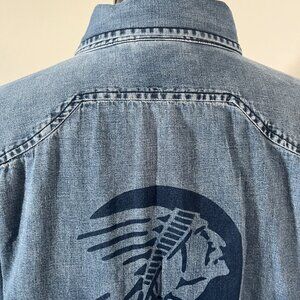 Indian Motorcycles Sz L Chambray denim Logo Printed Button Down Shirt