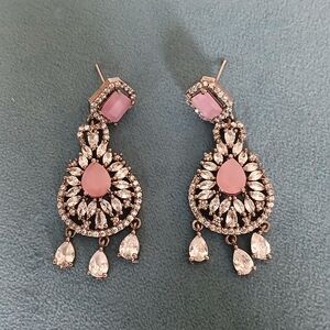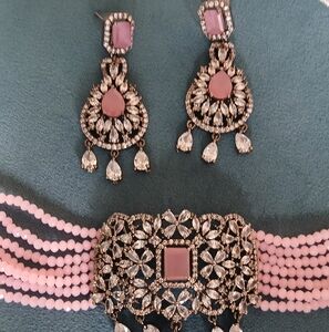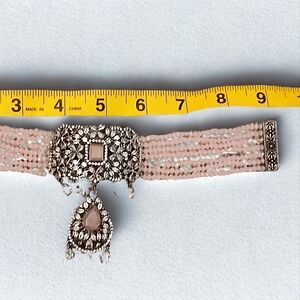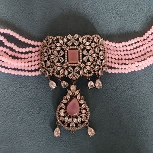 Indian Pakistani Pink & Silver Jewelry Set Statement Choker Necklace & Earrings