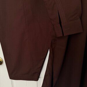 decision as kids vary in size. color is Dark Brown . Fabric is very fine quality wash and wear made by Diner Club.