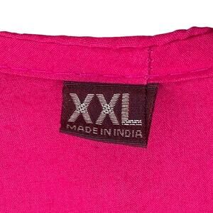 Indian Pink Cotton Multicolor Embroidered Dancers Geometric Sequins Tunic Top. Features geometric pattern and traditional Indian dancers embroidered in bright colors, silver faux "mirror" sequins, side slits, 3/4 length sleeves. Made in India. All photos are of the actual item. Marked XXL but more like a L (see measurements for sizing). New without tags. Cotton fabric. Measurements (approximate): PTP 20.5", waist 37", length 39", sleeve length 20.5".