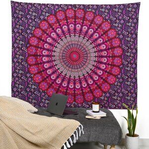 Indian Purple Pink Mandala Tapestry Wall Hanging Peacock Hippy Tapestries Hippie