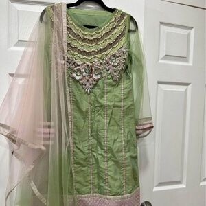 Indian Style green and pink 3pcs suit with dupatta (scarf)