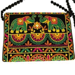 Indian Traditional Rajasthan Sling Clutch Bag, Elephant Art