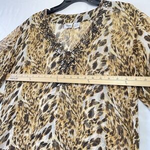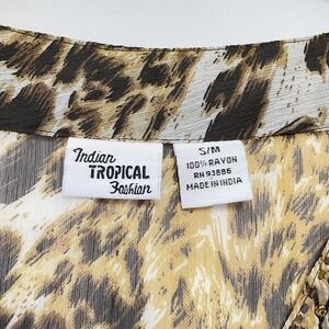 Indian Tropical Fashion Tunic Top S/M Animal Print Beaded V Neck Rayon Women