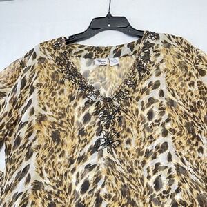 Keywords: Indian Tropical Fashion, Tunic Top, Animal Print, Beaded, V Neck, Rayon, Boho, Bohemian, Resort Wear, Casual Top, Lightweight, Summer Top, Blouse