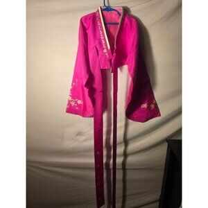 Indian Womens Bright Pink Jacket Tie Waist Ceremony Wedding Floral Size Medium M