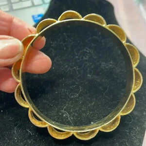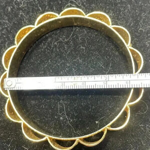 Indian kundan bangel , floral and heart pattern , 6” Around . Gold tone metal Very sturdy