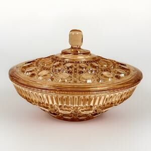 Indiana Candy Dish Covered Windsor Ballard Federal Peach Pink Depression Glass