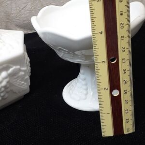 Indiana Colony Harvest Grapes milk glass candle holder and candy dish with lid