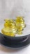 Stunning pair of yellow glass candlestick hold by Indian Glass Bo. They are a reproduction of the ones by Federal Glass. They have a beautiful delicate design on the body and base.