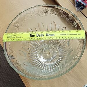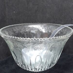 Indiana Glass Clear Punch Bowl Harvest Grapes Fruit Pattern Vintage USA