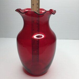 Indiana Glass Co Ruby Red #31000 Crimped 8" Vase Scalloped Edge Wide Mouth