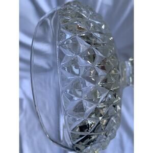 Great condition - no chips or cracks. No lid. This vintage Indiana Glass compote pedestal bowl stands at 7 1/4 inches in height, and features a beautiful diamond point pattern on its round shape. Made in the United States during the 1960s, this candy dish is made of clear crystal material, and weighs 2.2 pounds. The production technique used was cut glass, resulting in a stunning and intricate design.