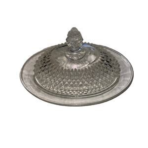 Indiana Glass Diamond Point Oval Butter Dish with Lid 9" x 6" x 5.5" CHIP ON LID