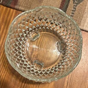 Indiana Glass Diamond Point clear crystal three-footed bon bon or candy dish.