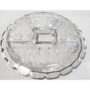 Vintage Indiana Glass Intaglio Clear & Frosted 5-Way DIVIDED SERVING PLATE Coi Fish Fleur de Lis Celery Figs - NEW Condition!