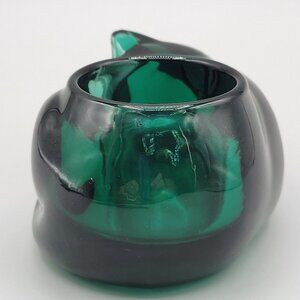 Indiana Glass Evergreen Sleeping Cat Tea Light Votive Candle Holder