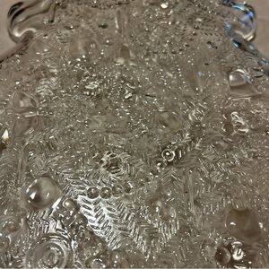 Indiana Glass Christmas Tree Serving Tray. The tray features an embossed Christmas tree design and is made of clear glass. It measures 12 inches in diameter and comes boxed, making it the perfect gift for any host or hostess. The tray is made in the United States by Indiana Glass, a trusted manufacturer known for their quality glassware.