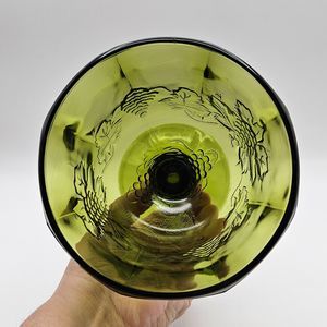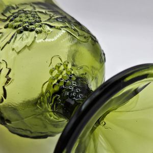 Indiana Glass Green Compote Pedestal Fruit Bowl Grape Design Vintage