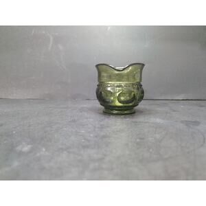 Step back in time with the Indiana Glass Green Kings Crown Creamer, a stunning piece of vintage Avocado Mid-Century Modern glassware that exudes elegance and charm. The creamer features a distinctive thumbprint design, adding a touch of uniqueness to your table setting or collection. Crafted with precision and artistry, this serving collectible is not only functional but also a conversation starter. Perfect for adding a pop of color to your dining experience, this creamer embodies the nostalgia of a bygone era. Whether you are a glassware enthusiast or simply appreciate fine craftsmanship, the Indiana Glass Green Kings Crown Creamer is a must-have addition to your home decor. Elevate your tabletop aesthetics with this timeless piece that showcases the beauty of vintage glassware.