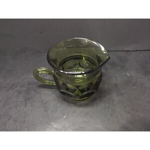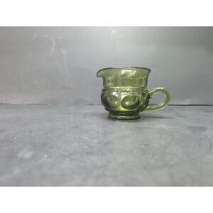 Indiana Glass Green Kings Crown Creamer, Vintage Avocado Glassware, Thumbprint