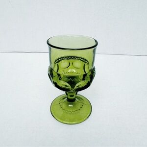 Indiana Glass kings crown thumbprint green vintage glass. 4.5” tall, 2.5” diameter.