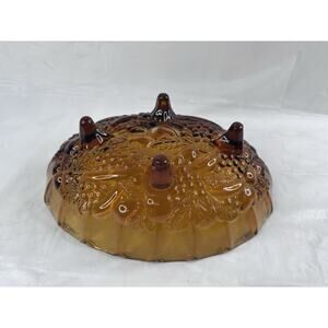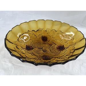 Indiana Glass Harvest Grape Carnival Fruit Bowl Oval Amber Footed MCM Vintage