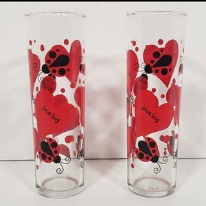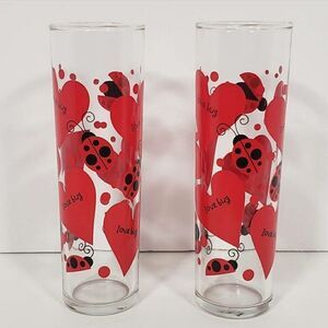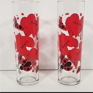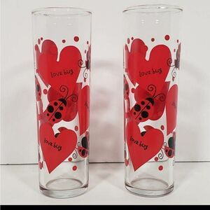 Indiana Glass Hearts and Lovebugs Crystal Vase Set of