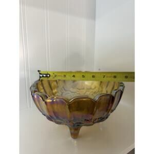 Indiana Glass Iridescent Carnival Amber Glass Oval Fruit Bowl Footed Vintage